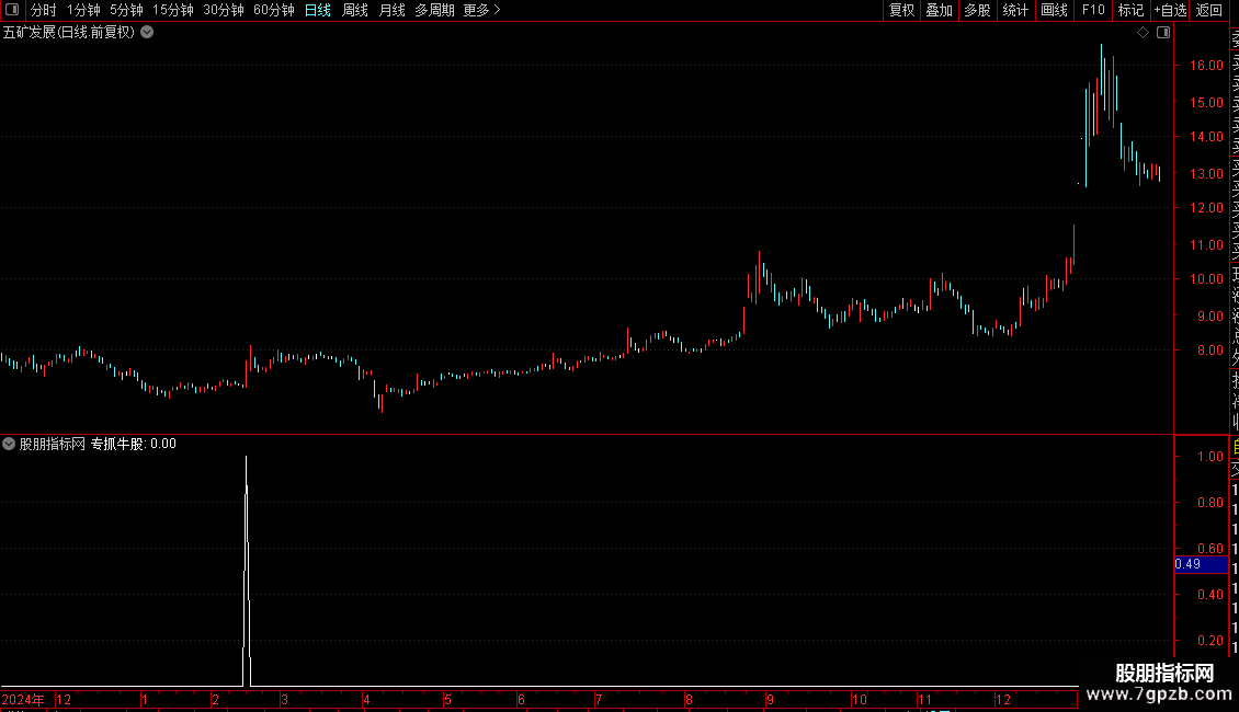 指标名为“专抓牛股”,是一个综合性的选股公式。它通过整合多种技术条件来筛选潜在的强势启动股。