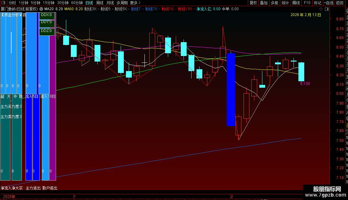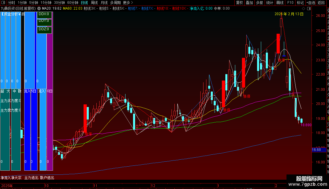 指标集成:显示DDX、DDY、DDZ及主力买卖力度。