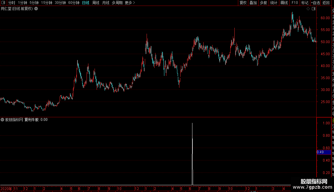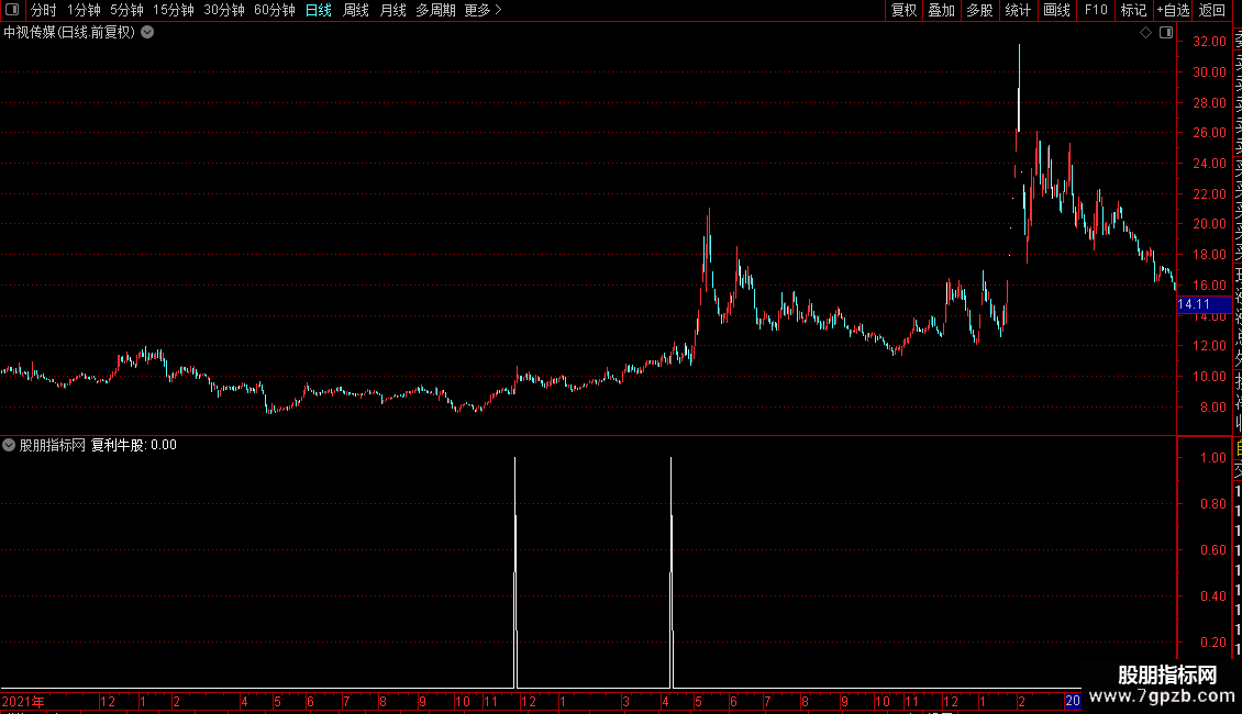 指标名为“复利牛股”,是一个综合性的选股公式。它通过整合多种技术条件来筛选潜在强势股。