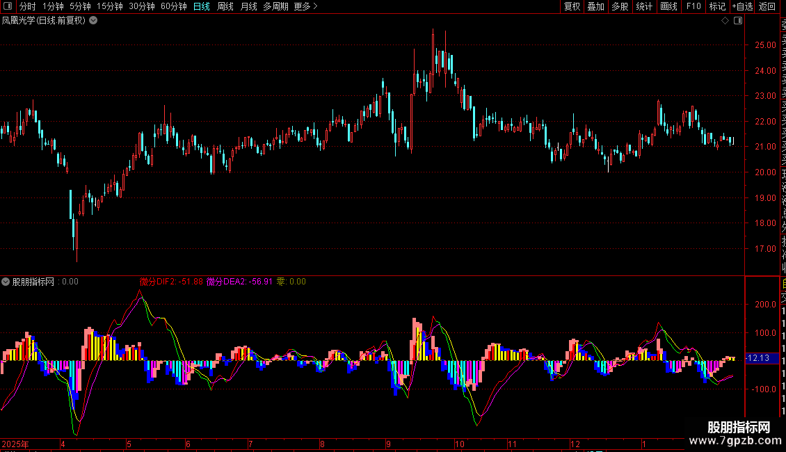 趋势判断:关注“微分DIF”与“微分DEA”的金叉死叉,以及MACD2柱状图在零轴上下和颜色的变化。