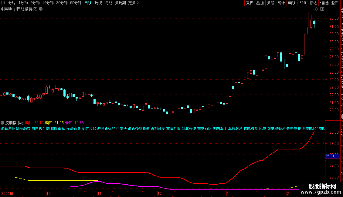 箱顶:HHV(MA((CLOSE),5),30)COLORRED,LINETHICK2;
