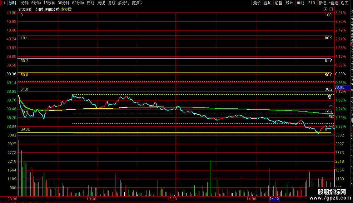 高低点区间线:自动识别近期高低点,并计算其标准、中高、中低等分位线,构成日内震荡区间。