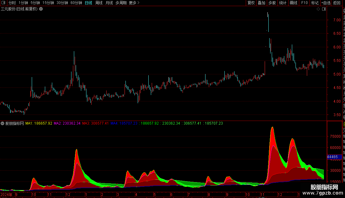 这是一个成交量均线指标,用于分析不同周期下的成交量趋势。