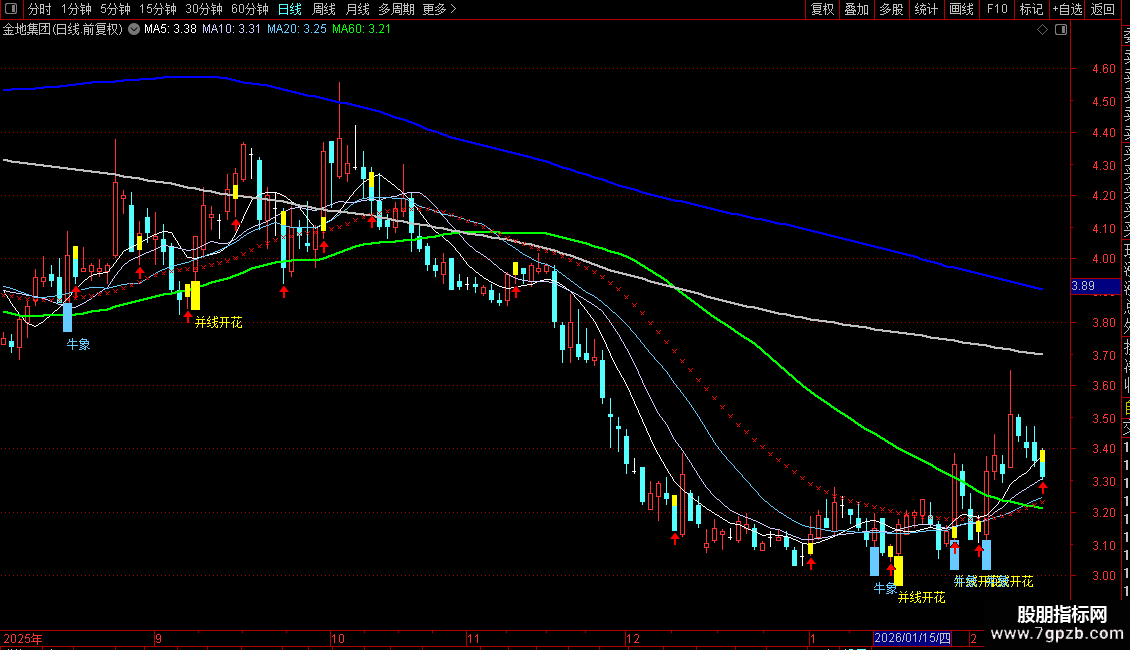 DRAWTEXT(MA3>=REF(MA3,1) AND MA1>=REF(MA1,1) AND CROSS(C,MA3),L-0.13,'牛象'),COLORFFCC66;