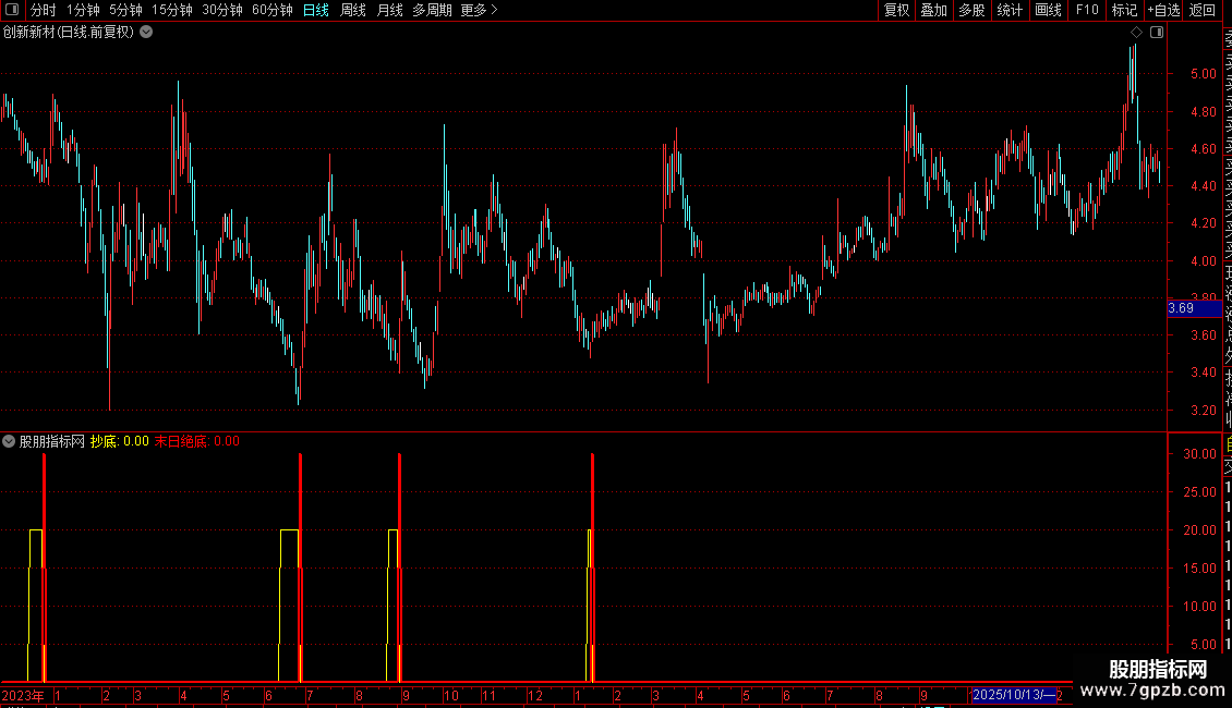1. 作为副图指标: 加载到副图区域,观察“抄底”和“末日绝底”信号的出现。