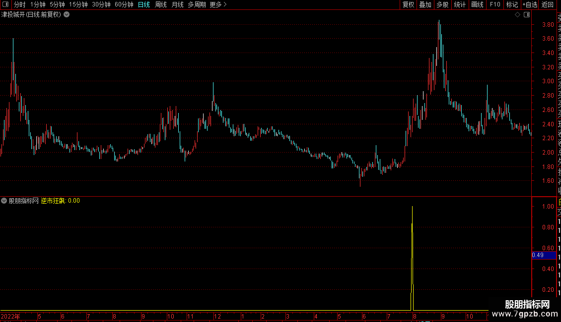 指标名为“逆市狂飙”,是一个复合型选股公式。其核心逻辑是识别在特定市场条件下,股价可能出现强势上涨的形态。