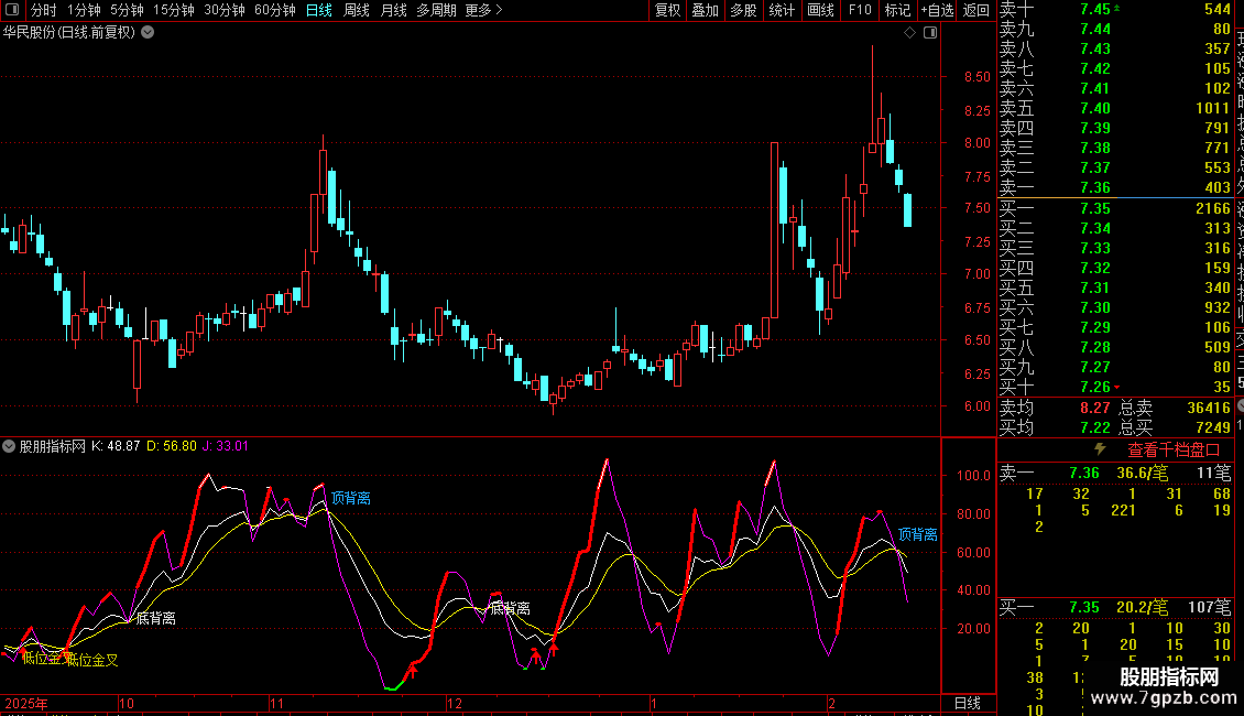 4. 超买超卖警示:对J值、K值、D值进入极端区域(如J<0, J>90, K>90, D>85)进行高亮显示,警示风险或机会。