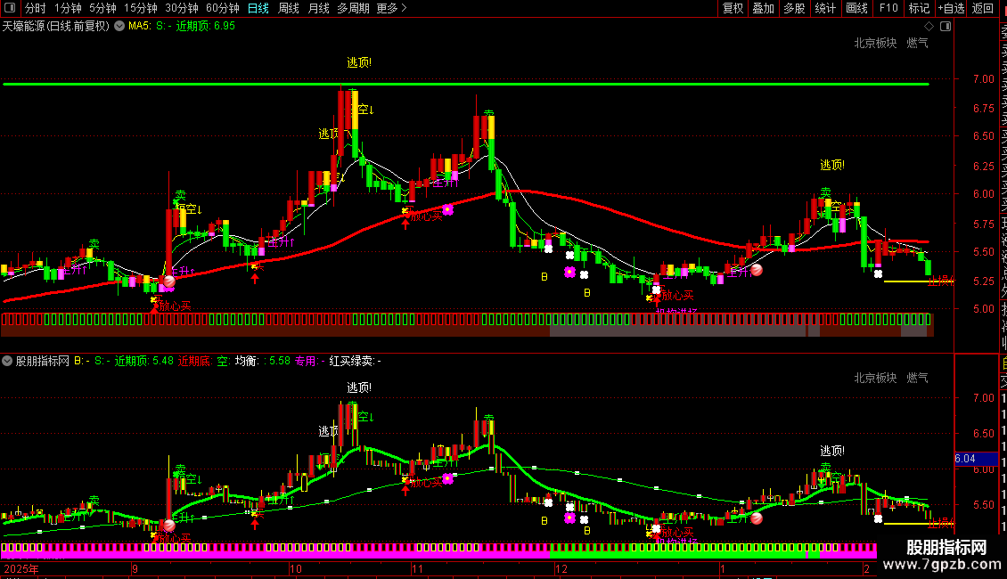 指标中大量使用了未来函数`ZIG`,会导致信号在历史K线上看起来非常准确,但在实时行情中可能发生变化或消失,请务必注意其滞后性和可能的重绘问题,不建议作为独立的交易依据。