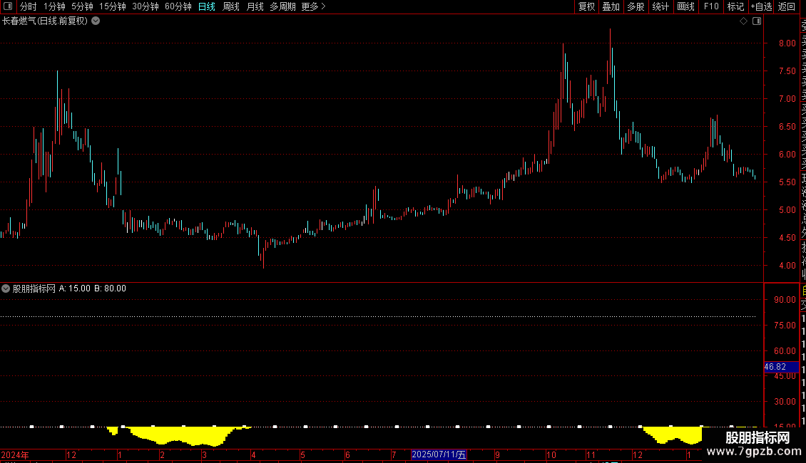 核心功能是识别市场的超卖区域。当三条线同时低于15时,会触发醒目的黄色柱状信号,提示可能的底部区域。指标主要用于辅助判断趋势强度与潜在的转折点。