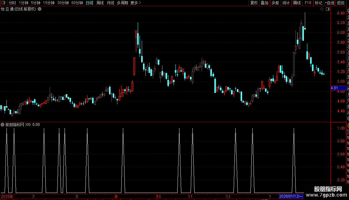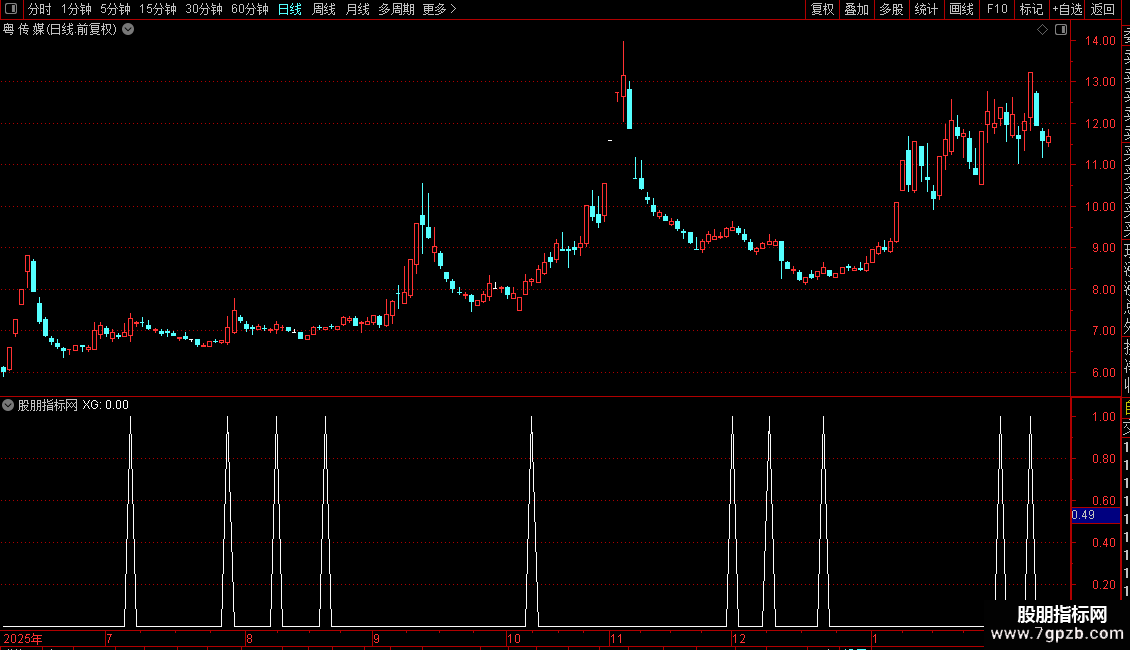 主要功能是识别短期均线差值上穿零轴的转折点,以此作为潜在的买入或趋势启动信号。指标通过条件函数控制线条的显示,使图表更直观。最终输出信号点,便于进行条件选股或预警。