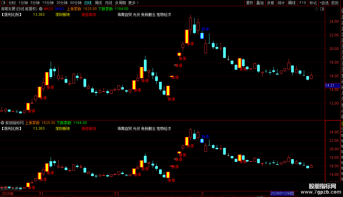 7. 大盘数据:引用并显示市场的上涨与下跌家数。