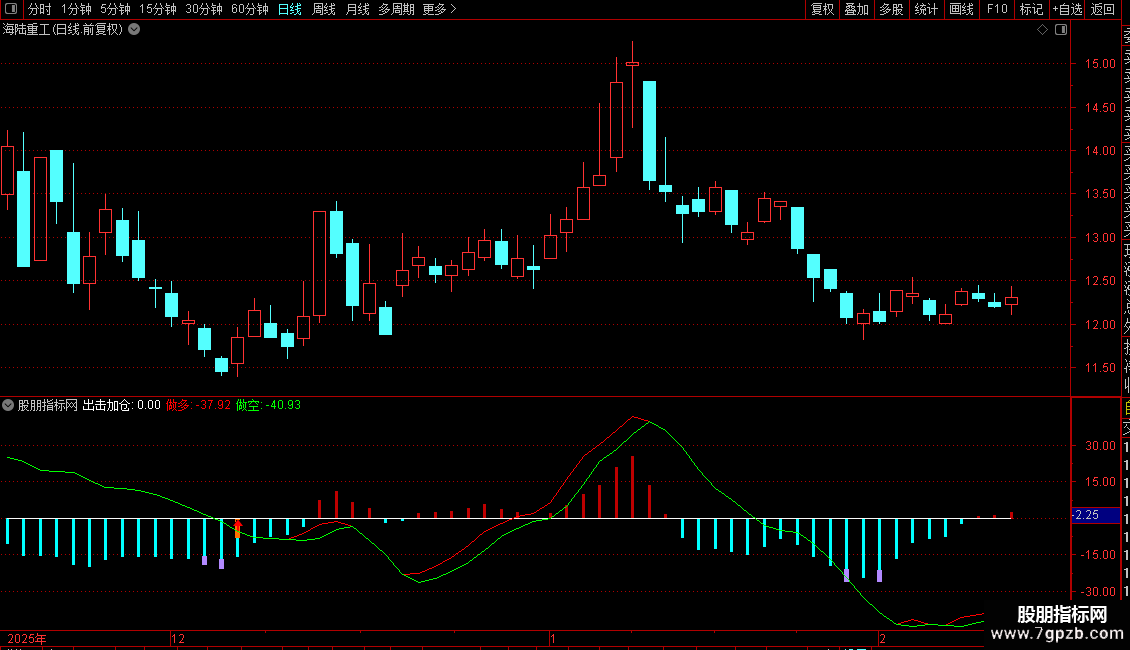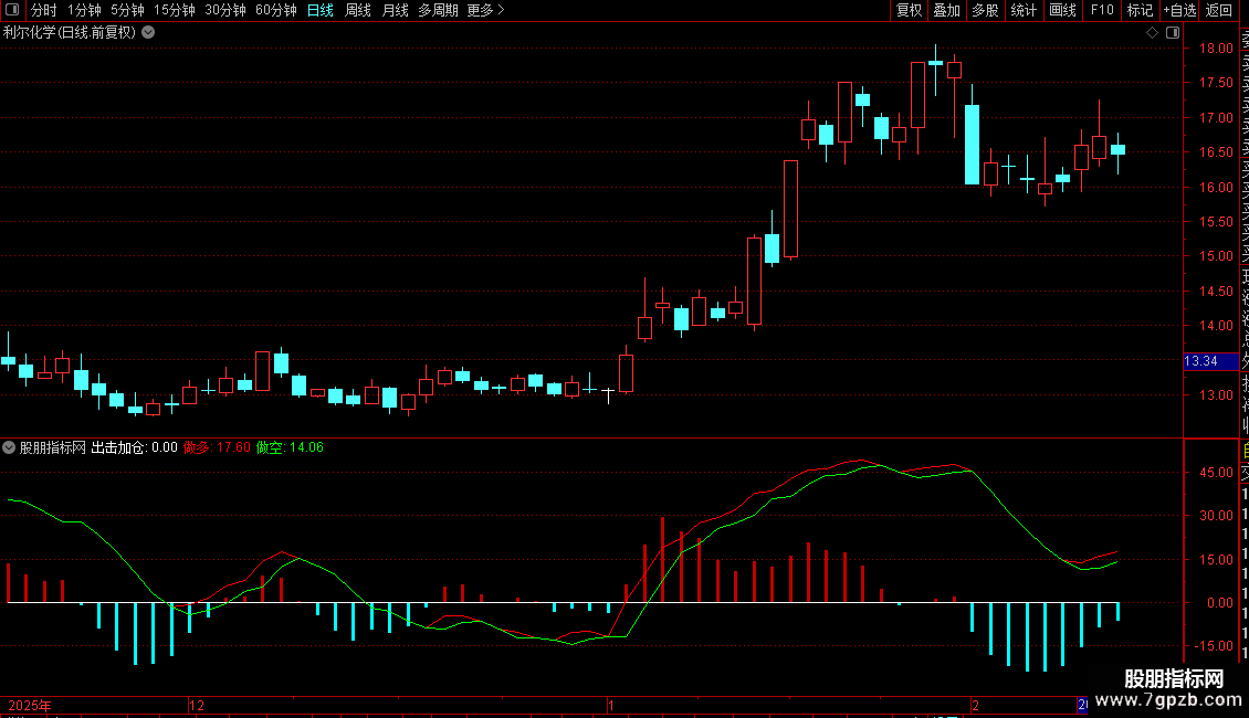 5. 加仓信号:在趋势指标(如MACD)出现金叉且处于超跌区域时,显示“加仓”文字提示。