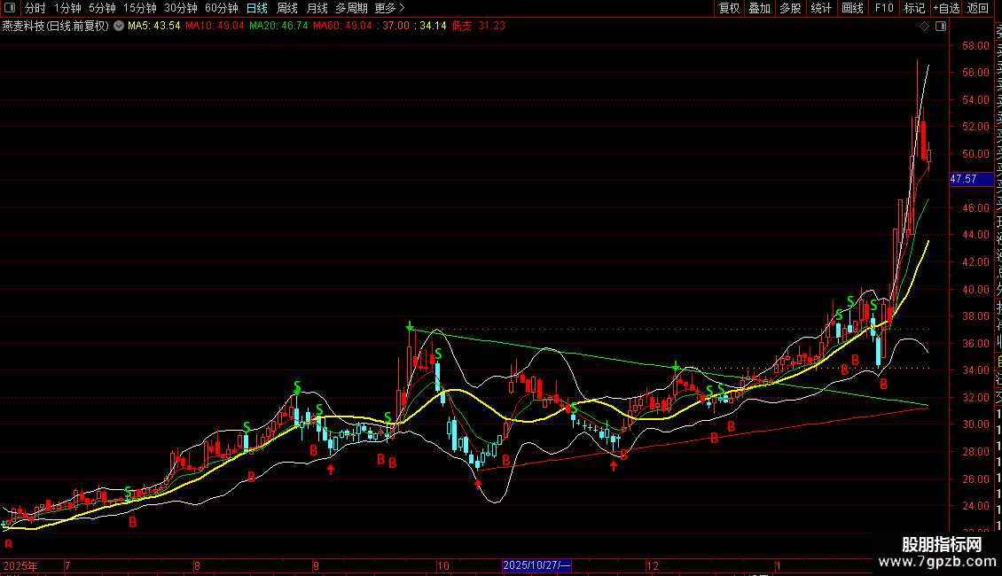 支撑与阻力:`高压线`和`低支线`构成近期的价格通道,是关键的支撑和阻力位。股价接近`低支线`可能获得支撑,接近`高压线`可能遭遇压力。