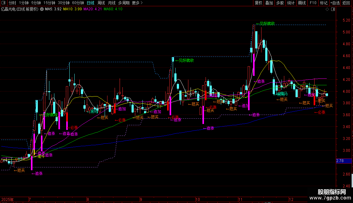 DRAWTEXT(买,L*0.93,'←必涨'),COLORRED;