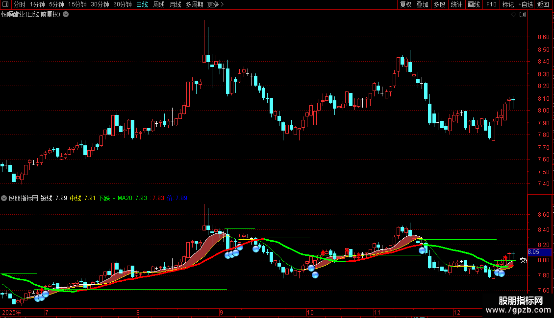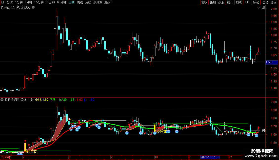 下跌:IF(VAR1=VAR6,VAR6,DRAWNULL),COLORGREEN;