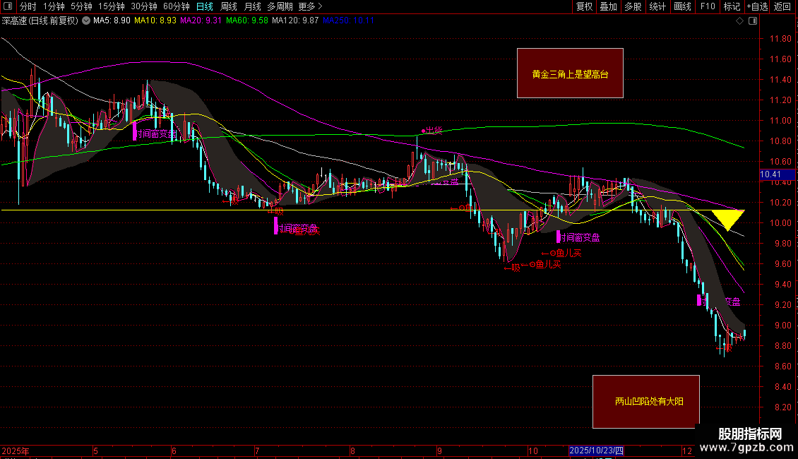 DRAWTEXT_FIX(1,0.70,0.10,0,'黄金三角上是望高台'),COLORYELLOW;
