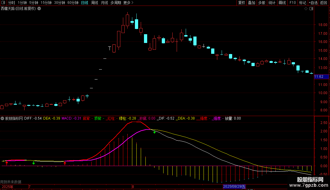 &&"MACD.DEA"<=-0.07)*"MACD.DIF")*1.50,COLORLIMAGENTA;
