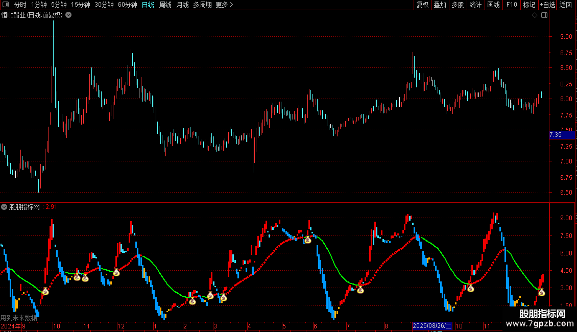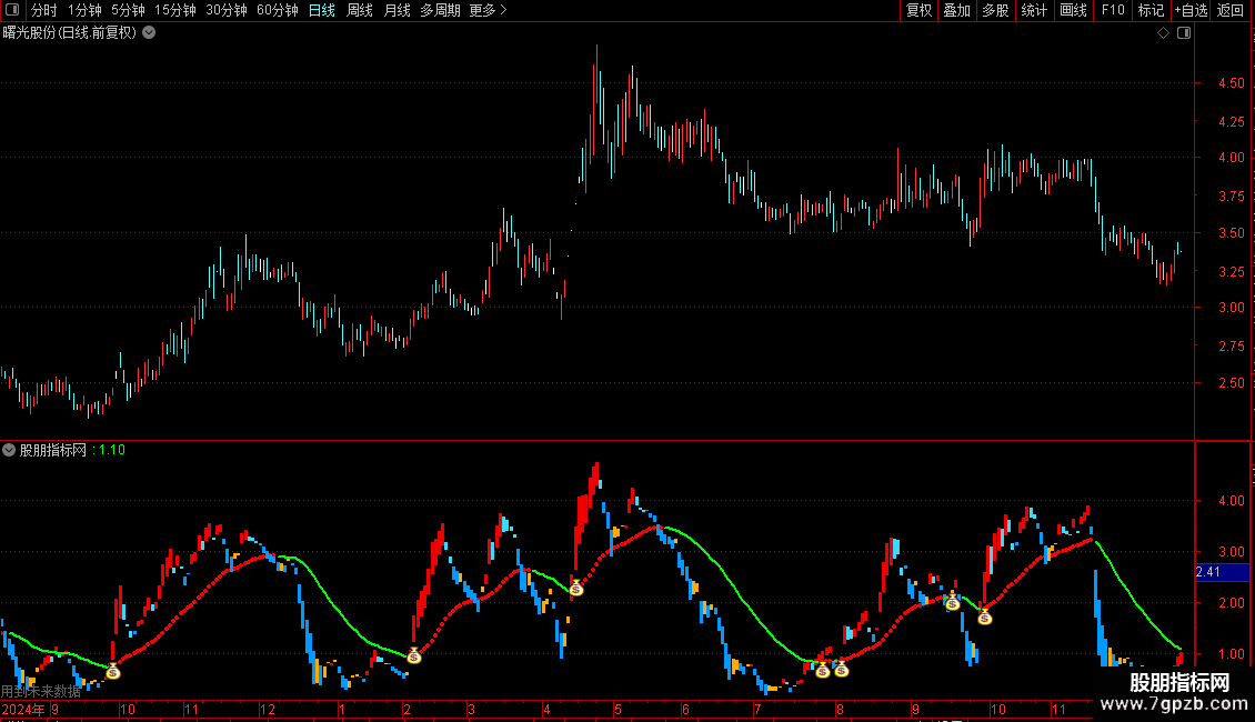STICKLINE(量1 >= 量2,量3,量1,1,0),COLOR0000EE;
