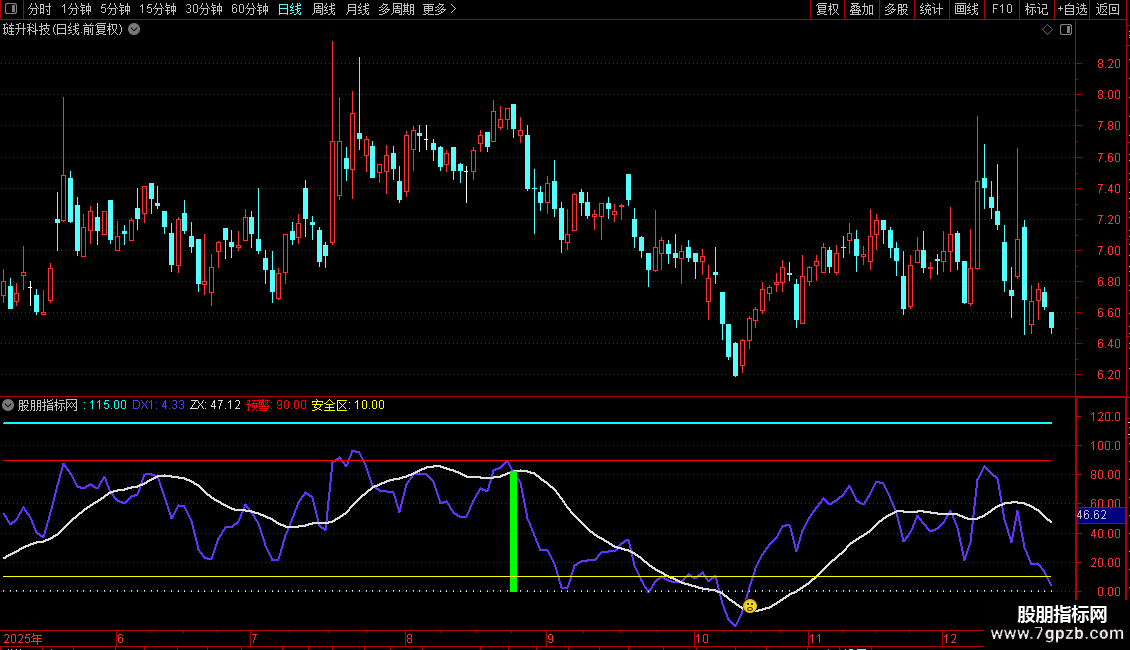 DX2:=EMA(DX1,12),COLOR889900,LINETHICK2;