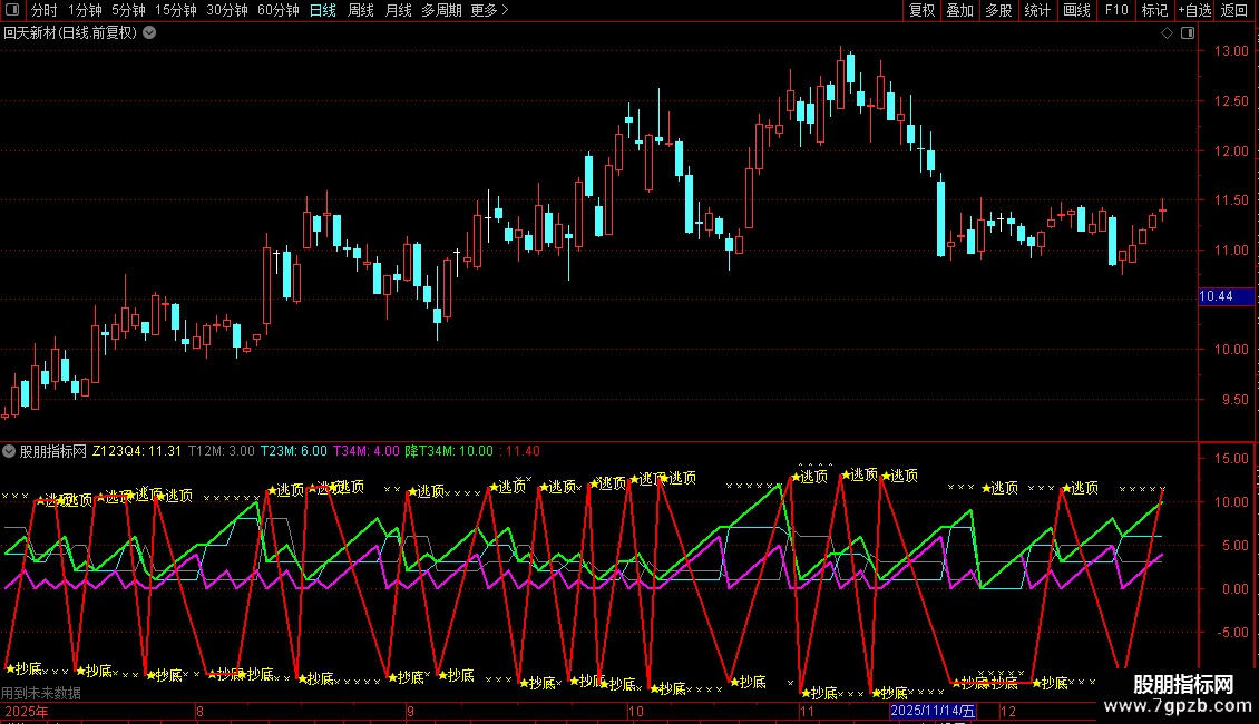 ZZDZ赋值:如果MS1234=LOWZIG,返回-最低价,否则返回如果MAX1=HIGHZIG,返回最高价,否则返回如果是否最后一个周期,返回收盘价,否则返回0