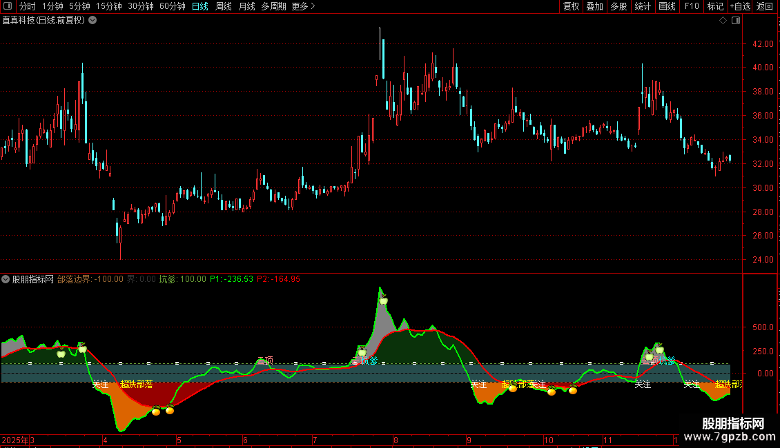 DRAWTEXT(CROSS(-100,CZ),-120,'超跌部落'),COLORYELLOW;