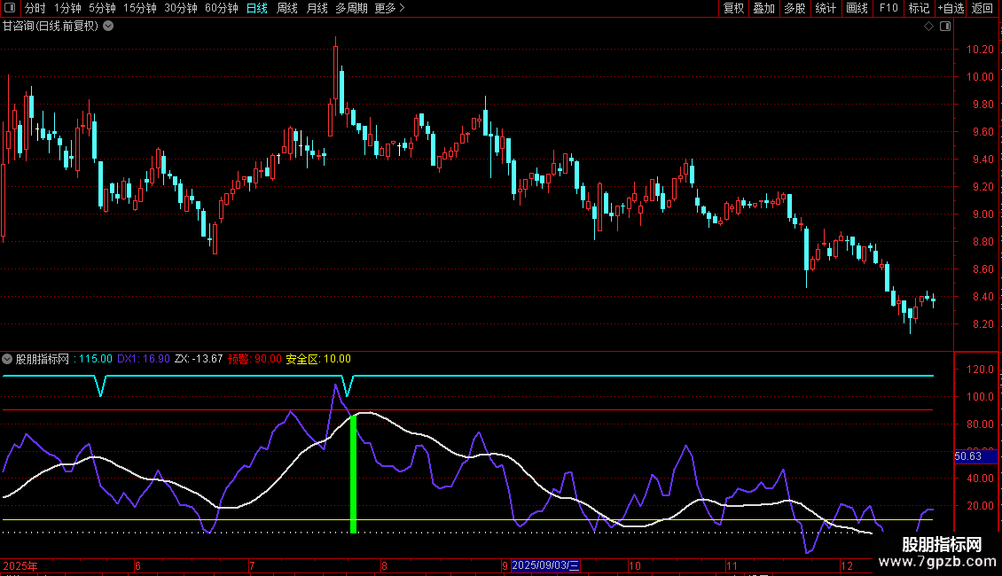 DX2:=EMA(DX1,12),COLOR889900,LINETHICK2;