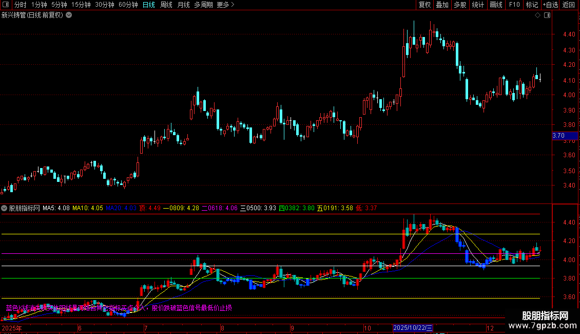 输出MA20:收盘价的M3日简单移动平均,画蓝色