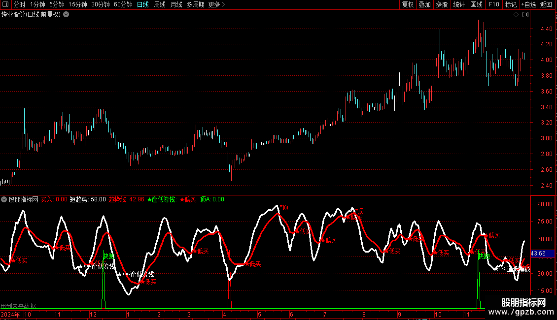 ★低买: DRAWTEXT(REF(CROSS(短趋势,趋势线),0.7) AND 短趋势>0.95*趋势线,趋势线,'★低买'),COLORRED,LINETHICK1;