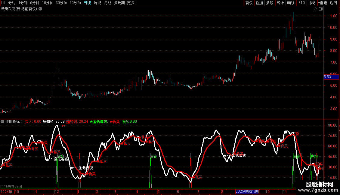 低买: REF(CROSS(短趋势,趋势线),0.7) AND 短趋势>0.95*趋势线;
