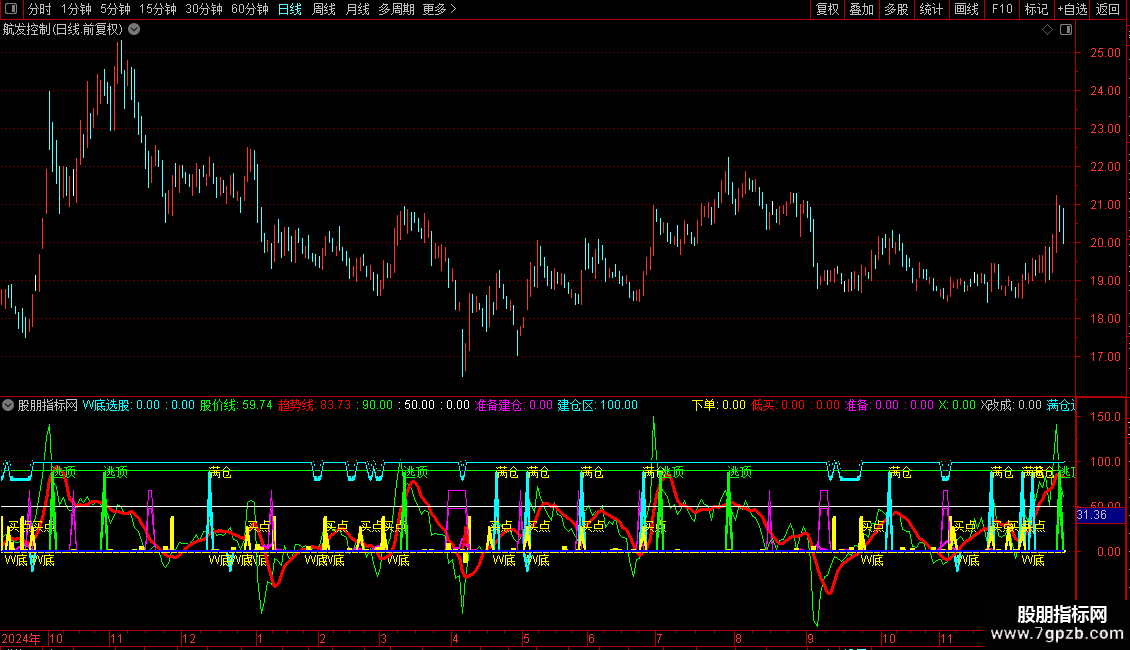 准备:(IF(((动向趋势线 > 88) AND (神偷线 < 5.8)),68,0)),LINETHICK1,COLORFF00FF;