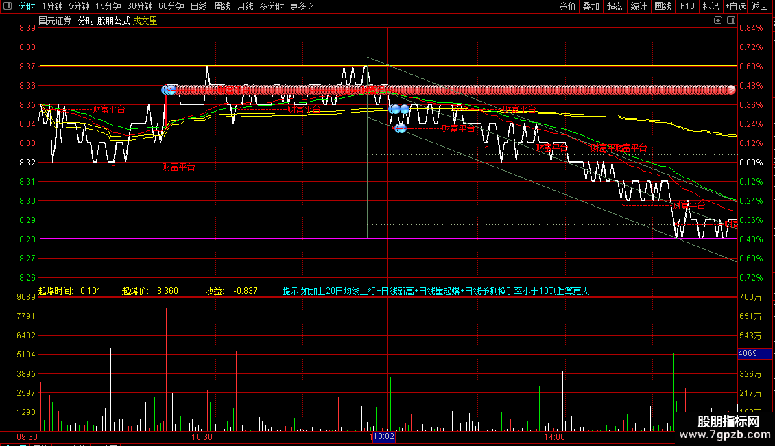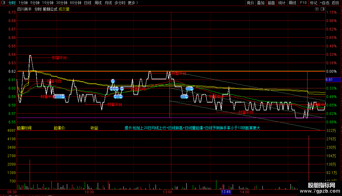 DRAWTEXT_FIX(ISLASTBAR,0.35,1,0,'提示:如加上20日均线上行+日线新高+日线量起爆+日线予测换手率小于10则胜算更大'),COLORFFFF00;