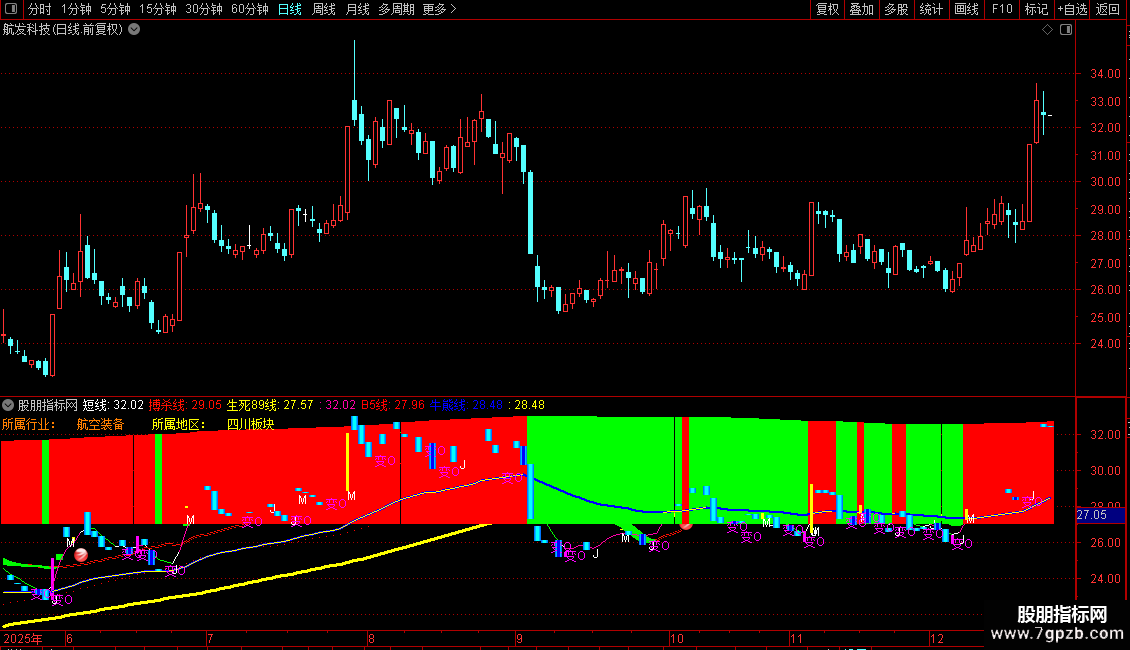 IF(SHTMA>=MY,短线,DRAWNULL),COLOR00FF00;