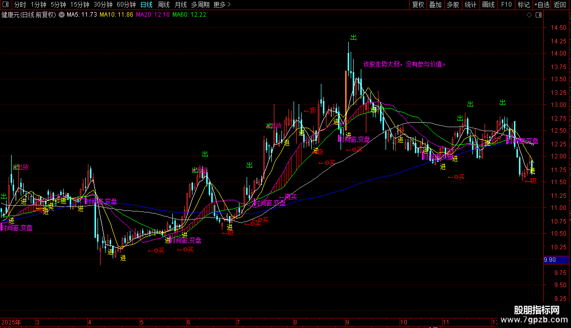 ,'该股走势太弱,没有参与价值。'),COLORFF00FF ;