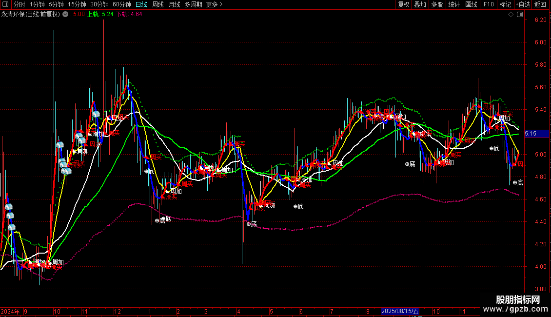 DRAWTEXT(LAST(MA(C,5)<MA(C,10),5,0) AND "cci.CCI">REF("CCI.CCI",1) AND crOSS("CCI.CCI",-100),L*0.975,'⊕底');
