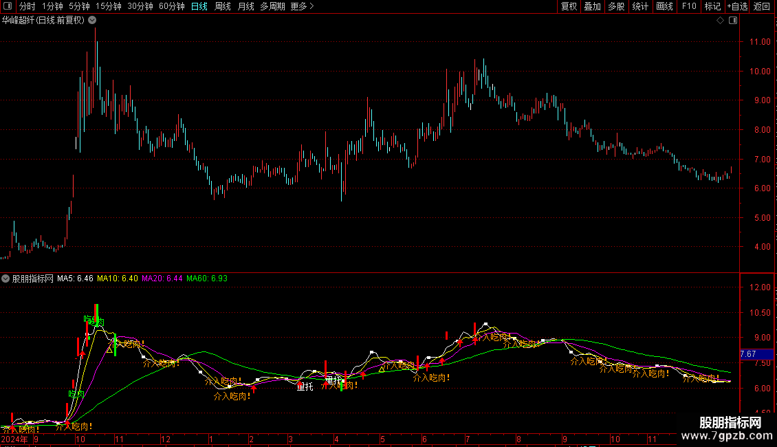 DRAWTEXT(卖出,H*1.05,'吃肉'),COLORGREEN;