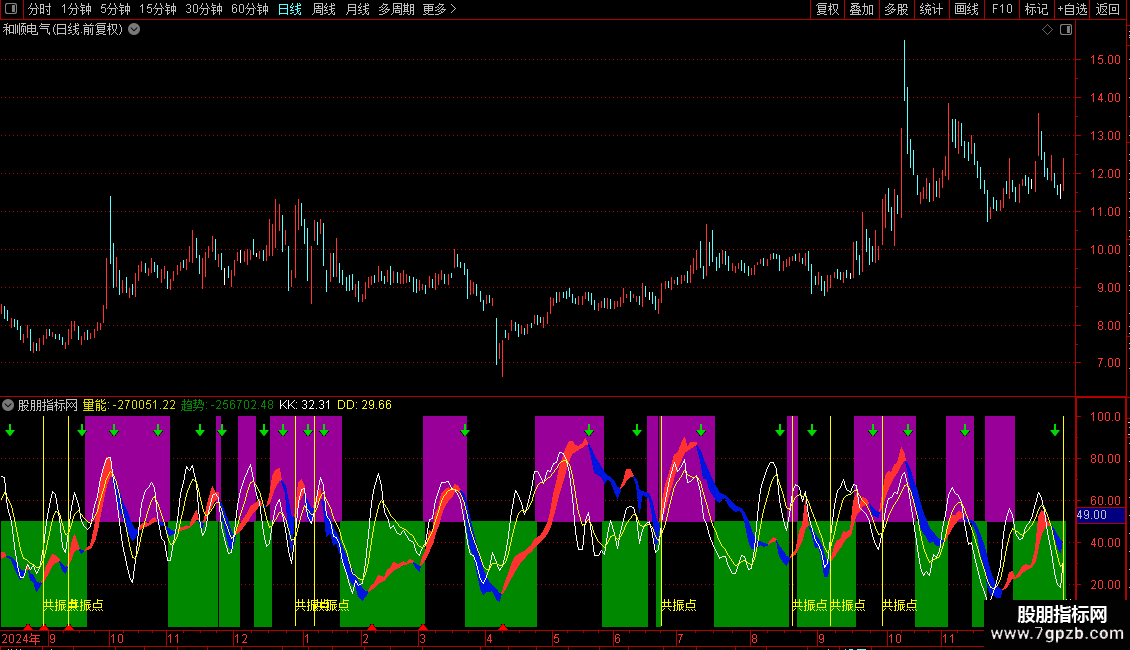 DRAWTEXT(CROSS(VAR4,VAR5) AND CROSS(KK,DD),10,'共振点'),COLOR00FFFF;