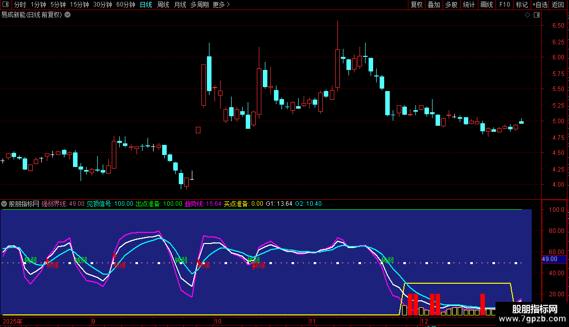 买点准备:IF(趋势线<=10,30,0),LINETHICK2,COLORYELLOW;