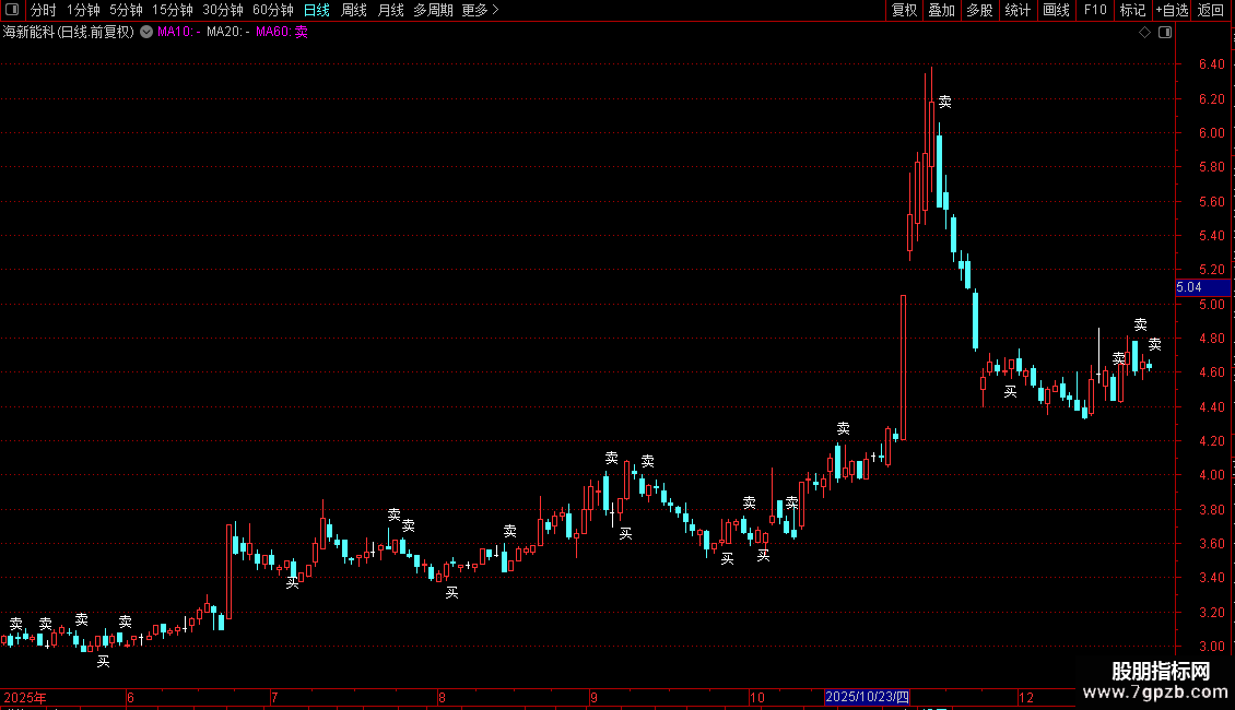 买:IF(CROSS(指导线,界) OR CROSS(买线,卖线),C,DRAWNULL),COLORMAGENTA,NODRAW;