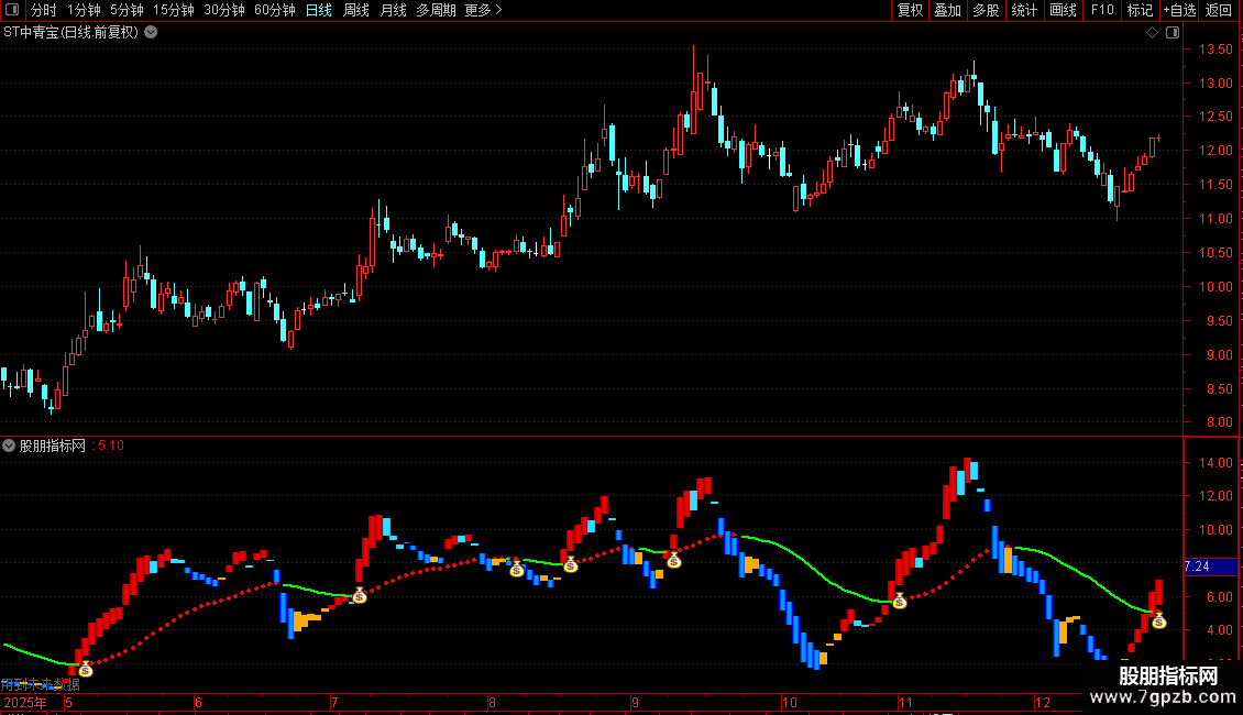 STICKLINE(量1 >= 量2,量3,量1,1,0),COLOR0000EE;