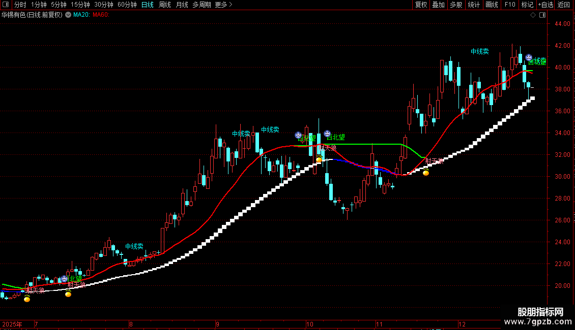 DRAWTEXT(crOSS(CV4,CV3) AND CV3>70,H*1.05,'中线卖'),COLORFFFF00;