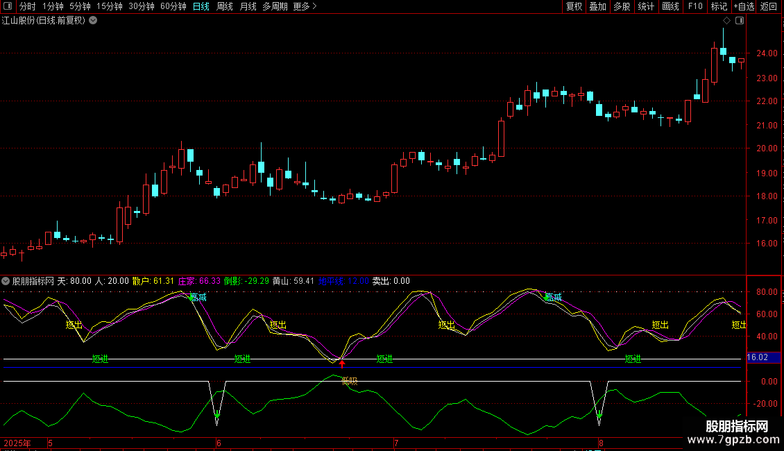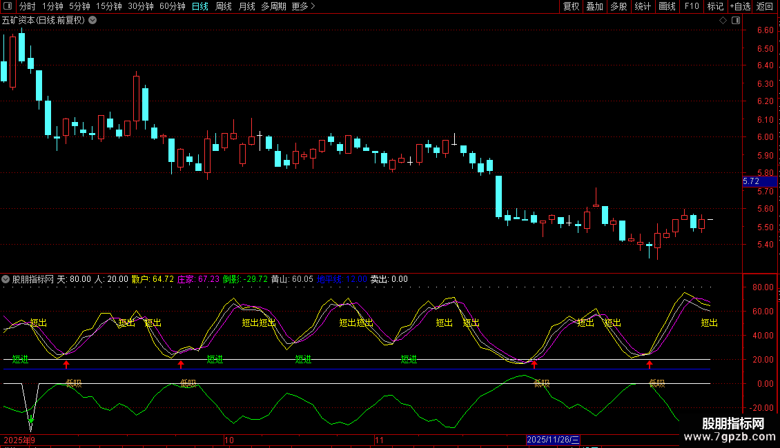 DRAWTEXT(CROSS(庄家,散户) AND 散户>40 AND 71>散户,50,'短出'),COLOR00FFFF;