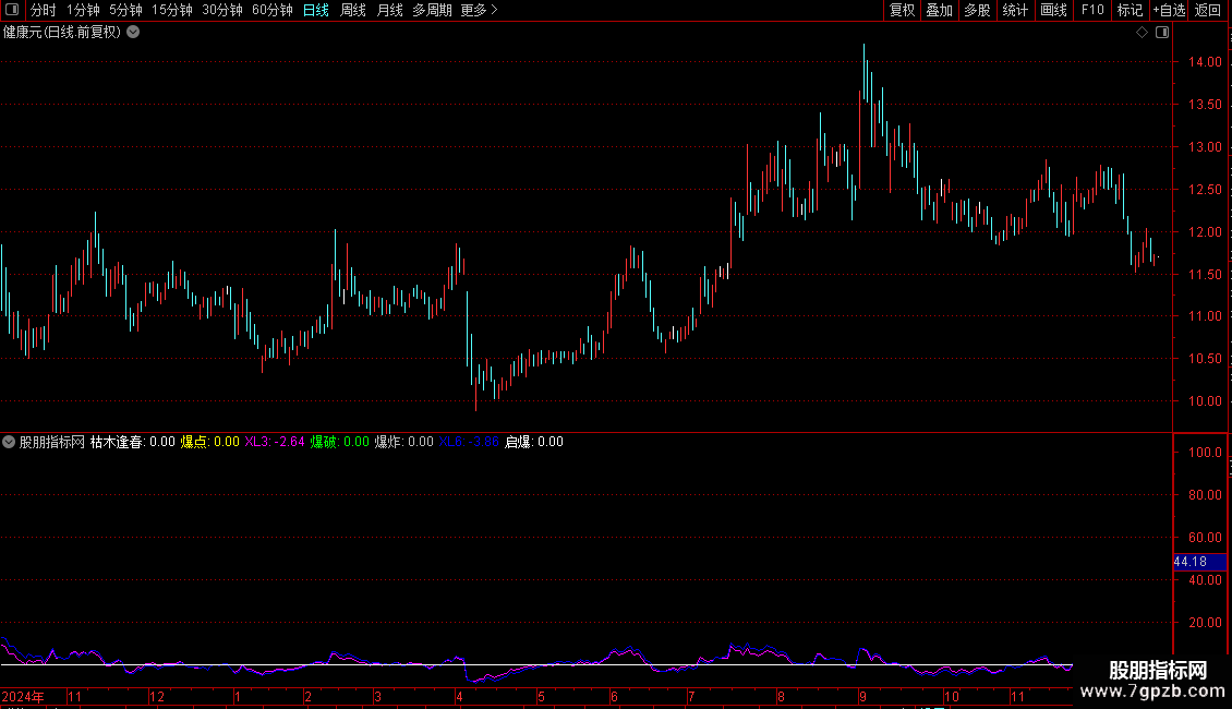 DRAWTEXT(枯木逢春,98,' 枯木逢春97.36%'),COLORGREEN;