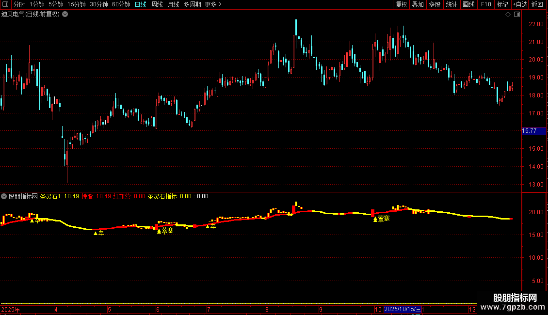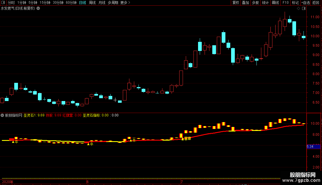 DRAWTEXT(圣灵石3 AND VOL>REF(V,1)*1.9 ,L*0.97,'▲卒'),COLORYELLOW;