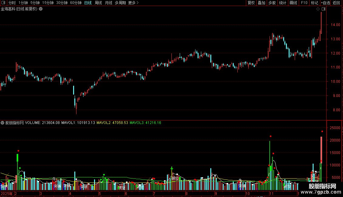 STICKLINE(跌停,VOL*0.5,VOL,2.5,0),COLOR2F4F2F;