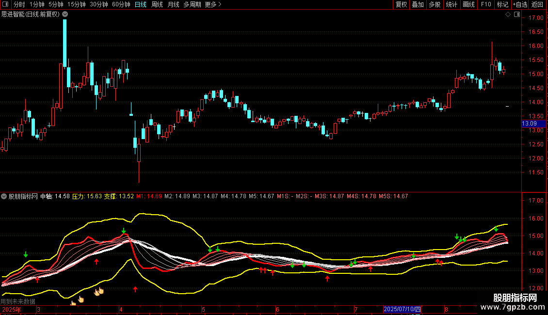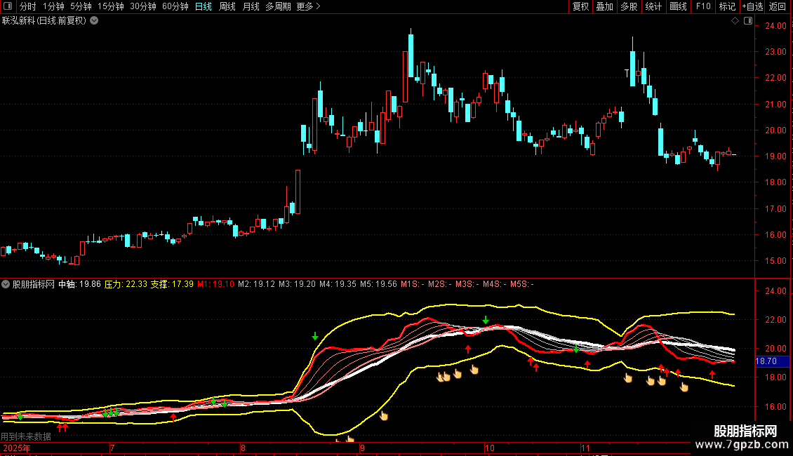 压力:中轴 + 2*STD(C,21),COLORYELLOW,LINETHICK2;