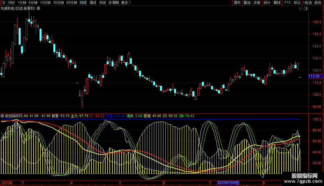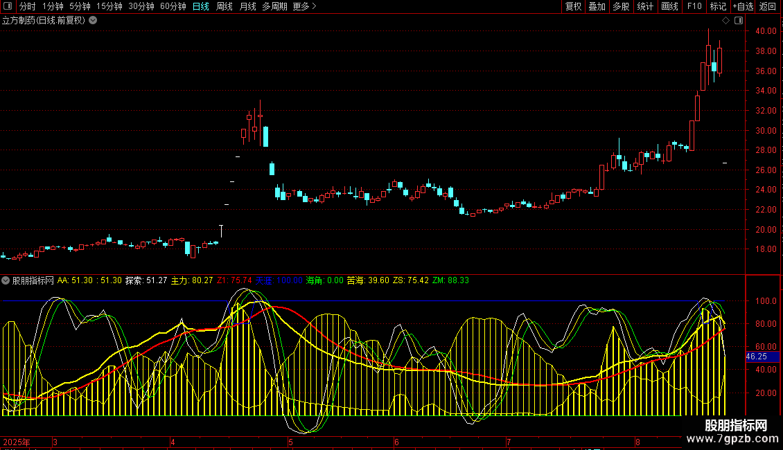 主力: (-1)*(EMA(Var7,1)-50)+50,COLORYELLOW,linethick2;
