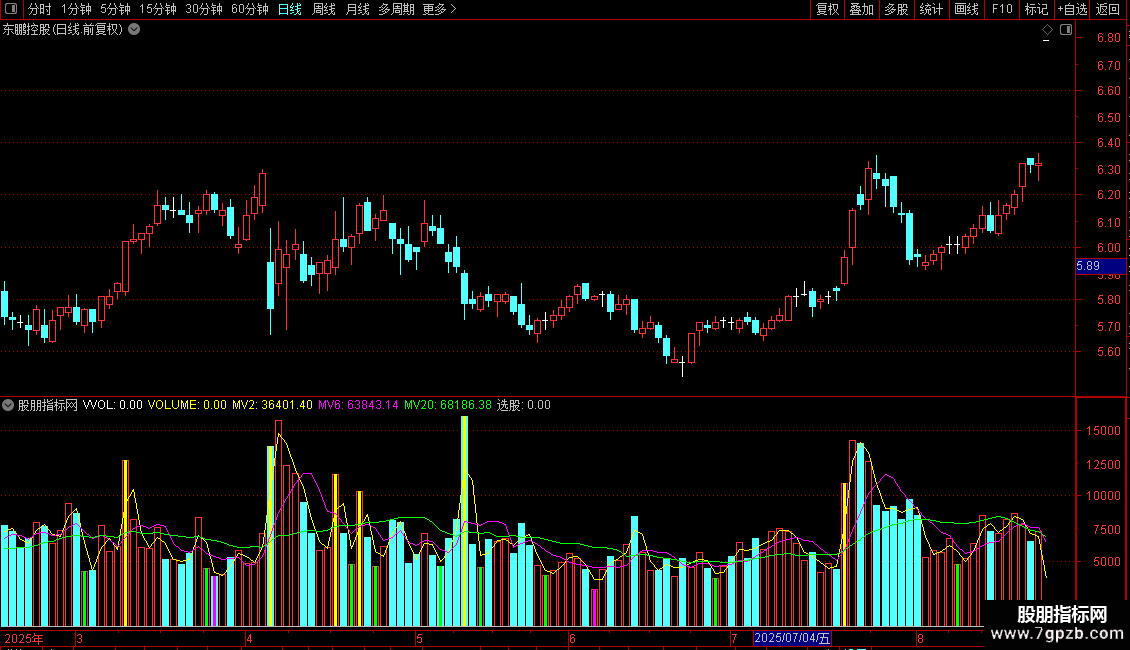 STICKLINE(CURRBARSCOUNT=1 AND PERIOD=5,VVOL,0,-1,-1),COLOR00C0C0;