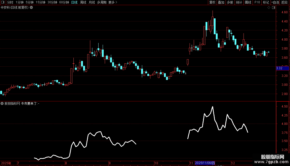 牛市要来了:IF(DEAA>REF(DEAA,1) AND DIFF>DEAA,C,DRAWNULL),LINETHICK3;
