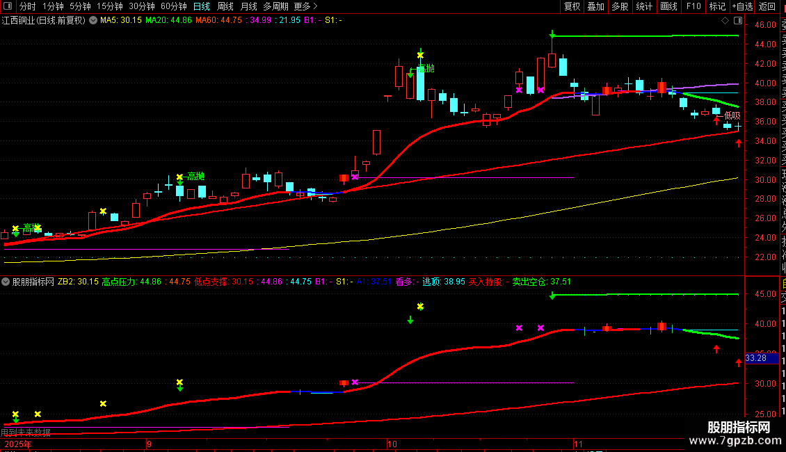 ZGEND:=CONST((高点压力+低点支撑)/2);