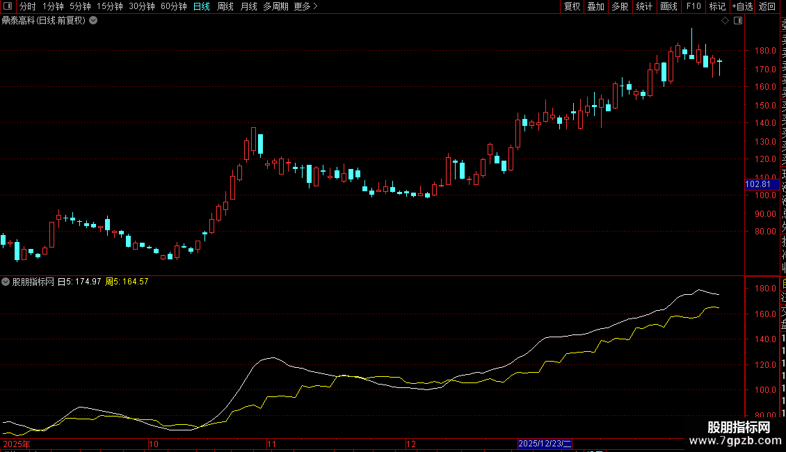 周5:(REF(CLOSE,T)+REF(CLOSE,T1)+REF(CLOSE,T2)+REF(CLOSE,T3)+CLOSE)/5;